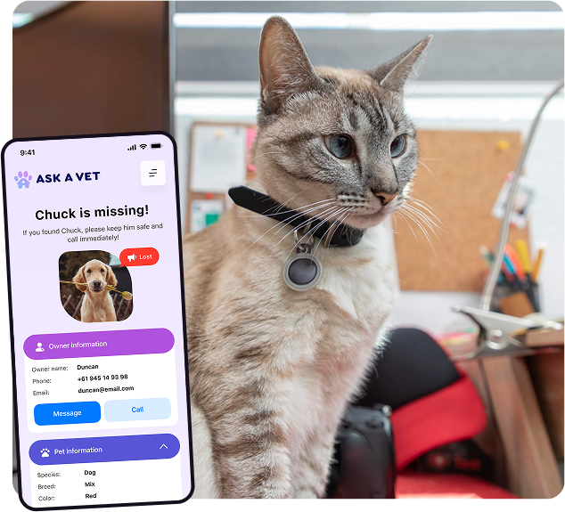 Real vets + powerful AI = faster answers, smarter health tracking, and support for every animal, all in your pocket.