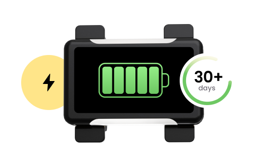 Battery life up to 30 days in standard use, and 10–14 days with GPS active daily