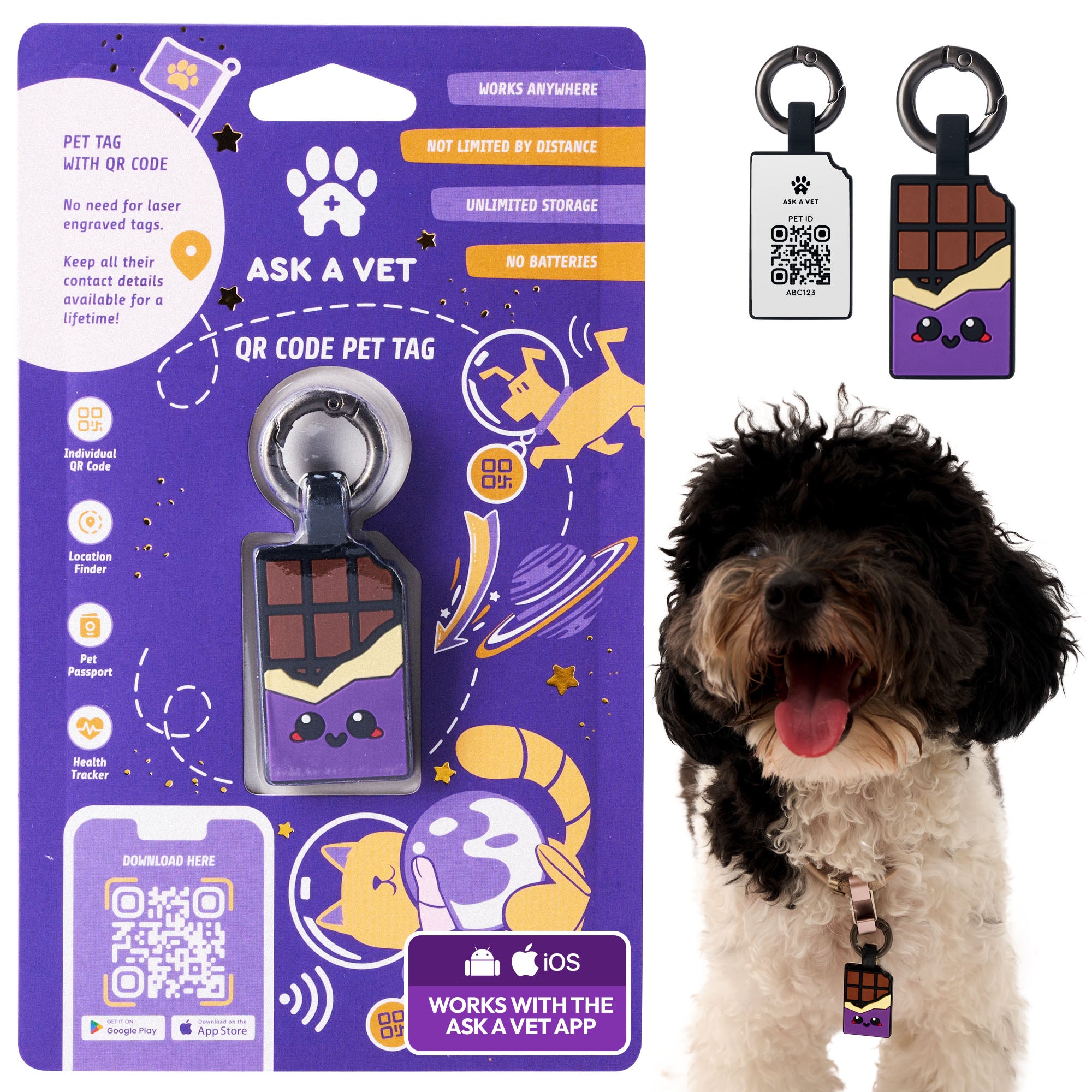 Sweeten your pet’s look with the ASK A VET Chocolate Bar Smart NFC & QR Code Pet ID Tag – available in two kawaii candy-style variants: Pink Chocolate and Purple Chocolate.