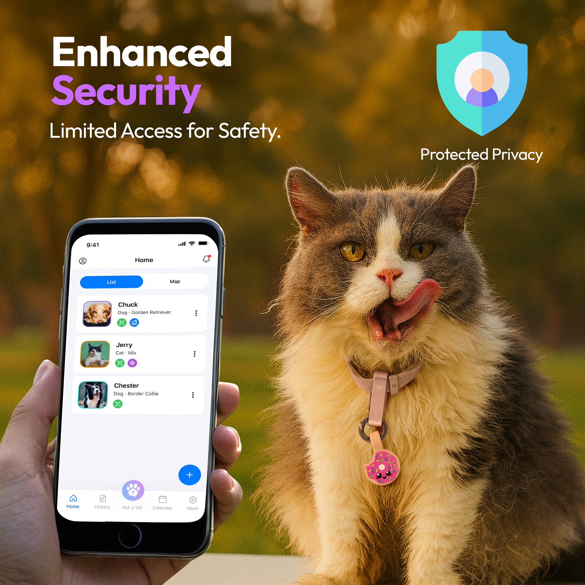 - 📱 Instant Smart ID: Store contacts, allergies, dietary info & vet records online.