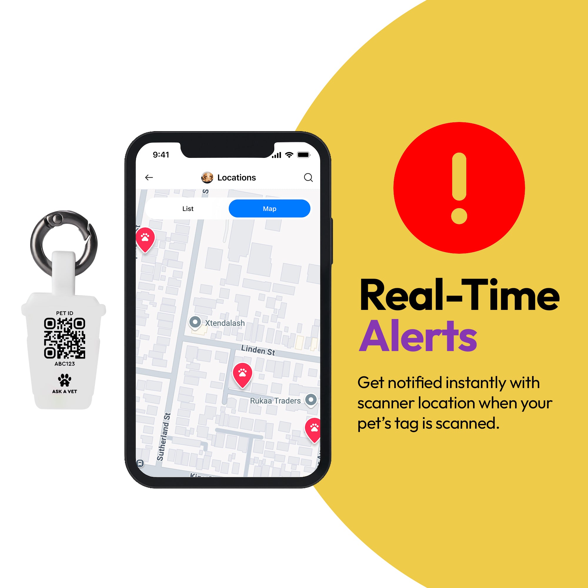 - 🚨 Real-Time Location Alerts: Get notified instantly when your pet’s tag is scanned.